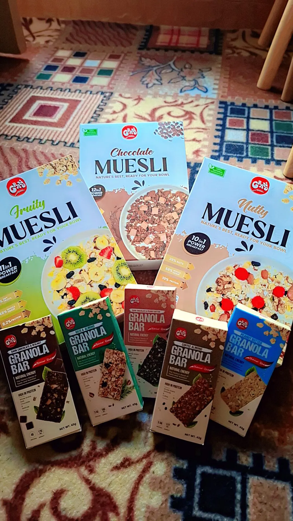 A balanced bundle for those who enjoy variety and convenience three 175g packs of Grano’s authentic muesli paired with five of our premium granola bars.